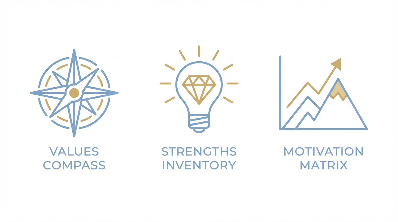 Every client completes three proprietary assessments at the start of the program. These aren't generic personality tests; they're designed specifically to surface the insights you need for career transformation.